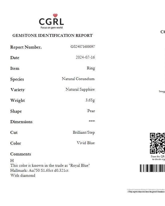 S: Blue Sapphire 1.68ct