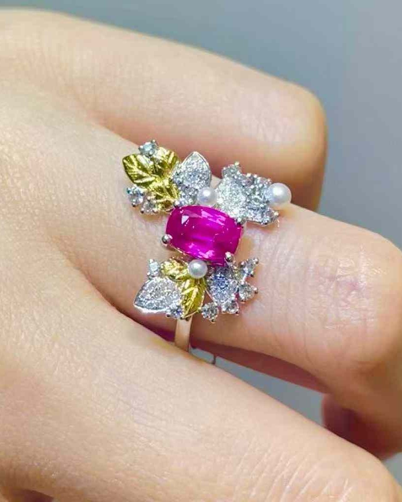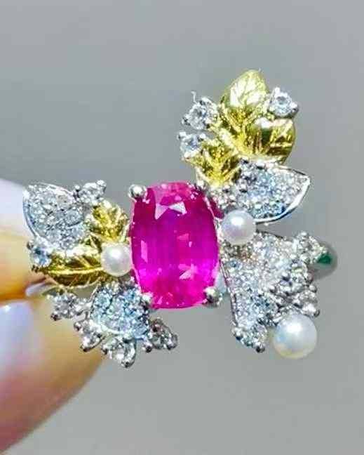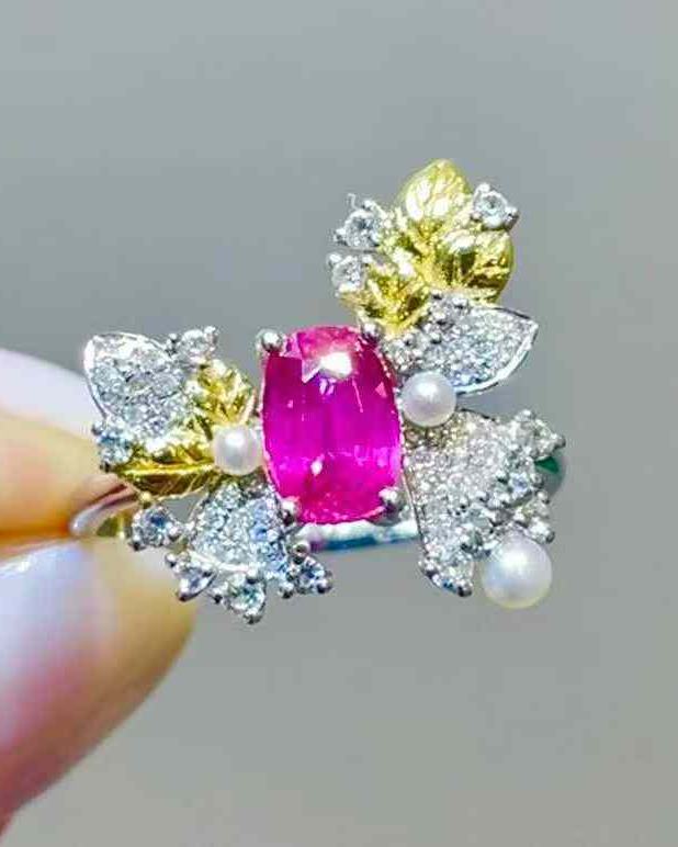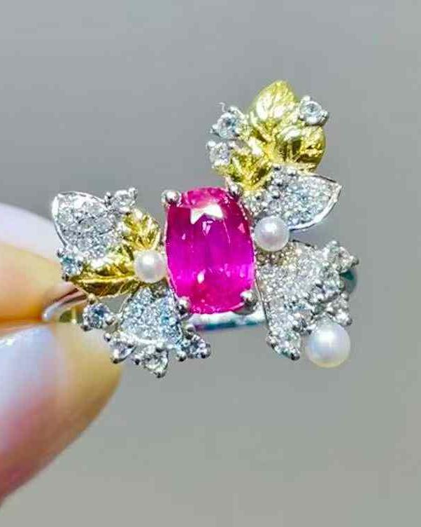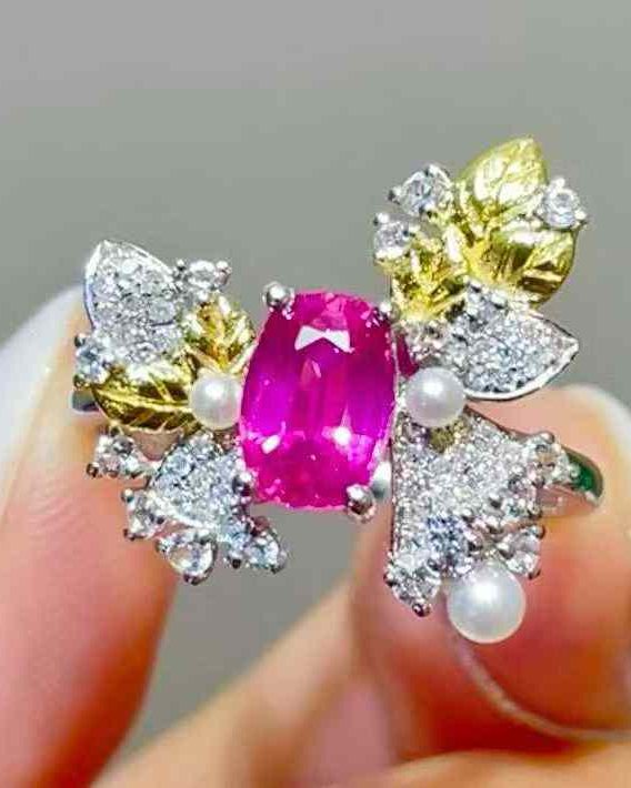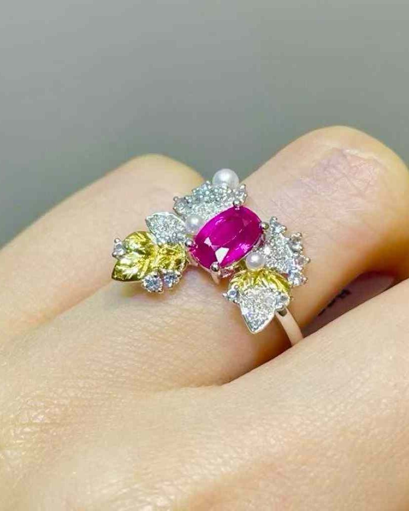 Ruby, Pearl, Diamond in 18K Gold