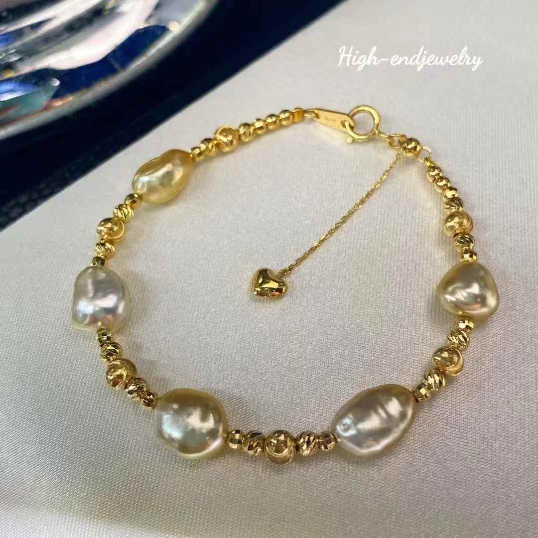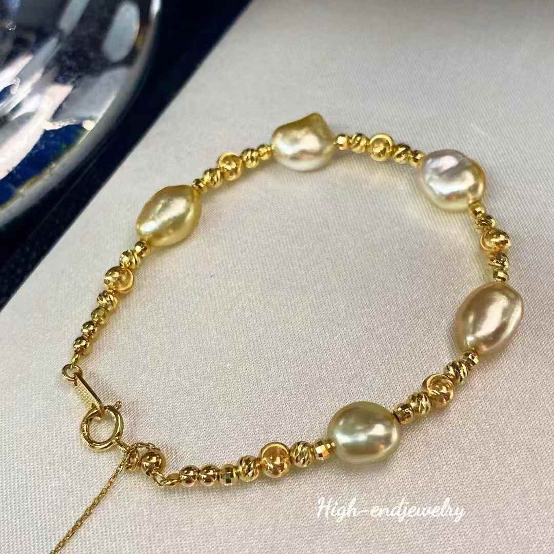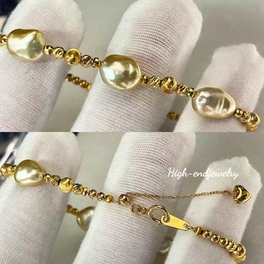 Rare, plump golden Keshi pearls with 18K gold accents