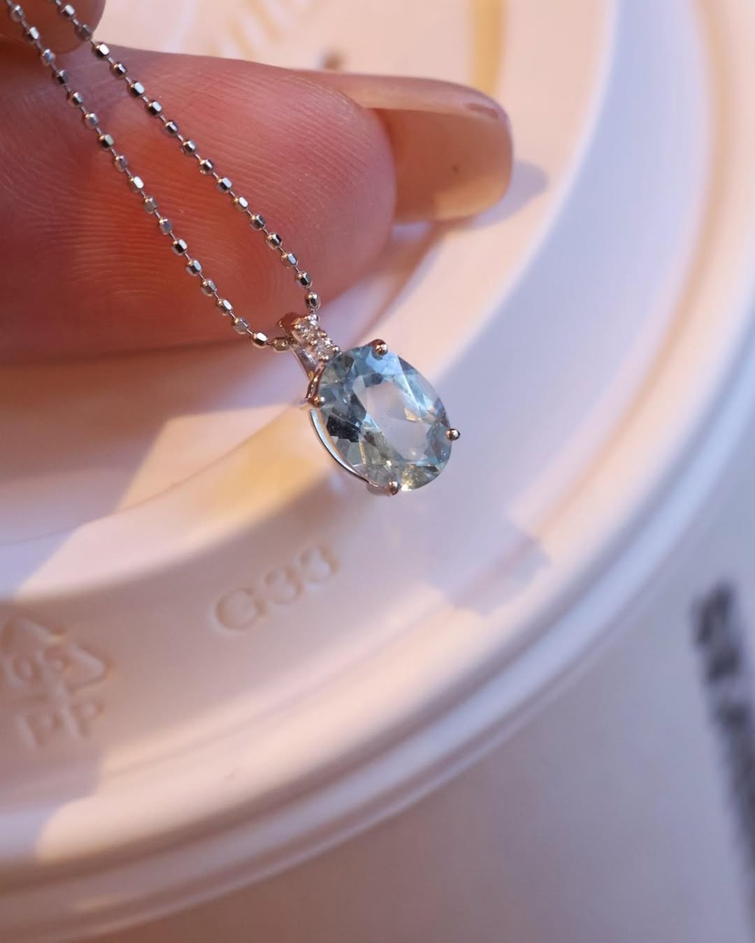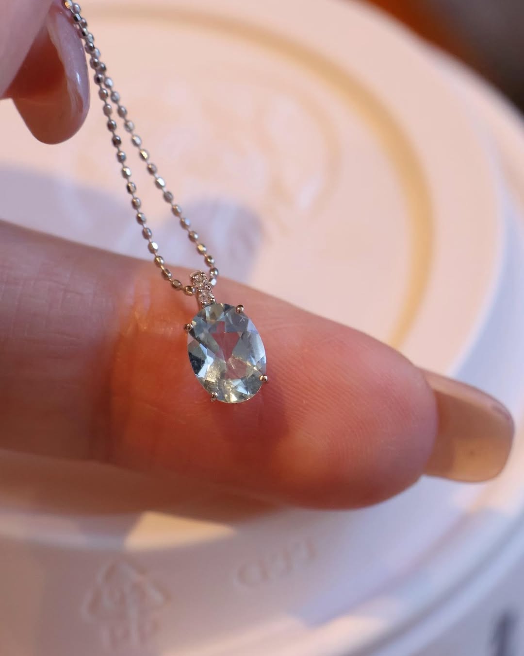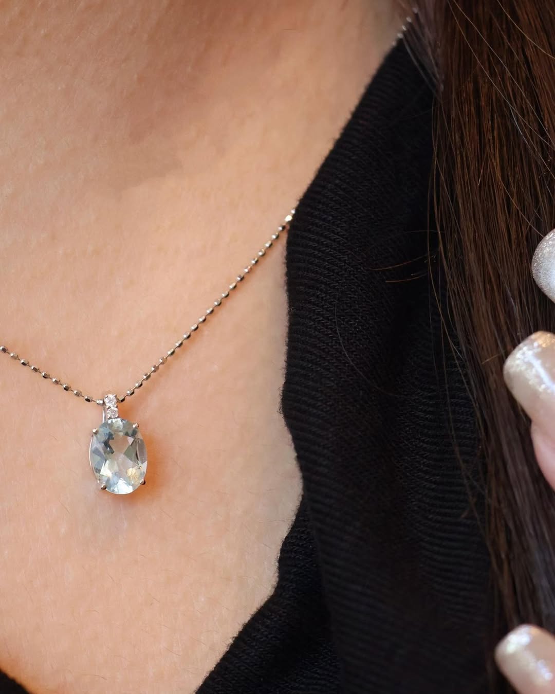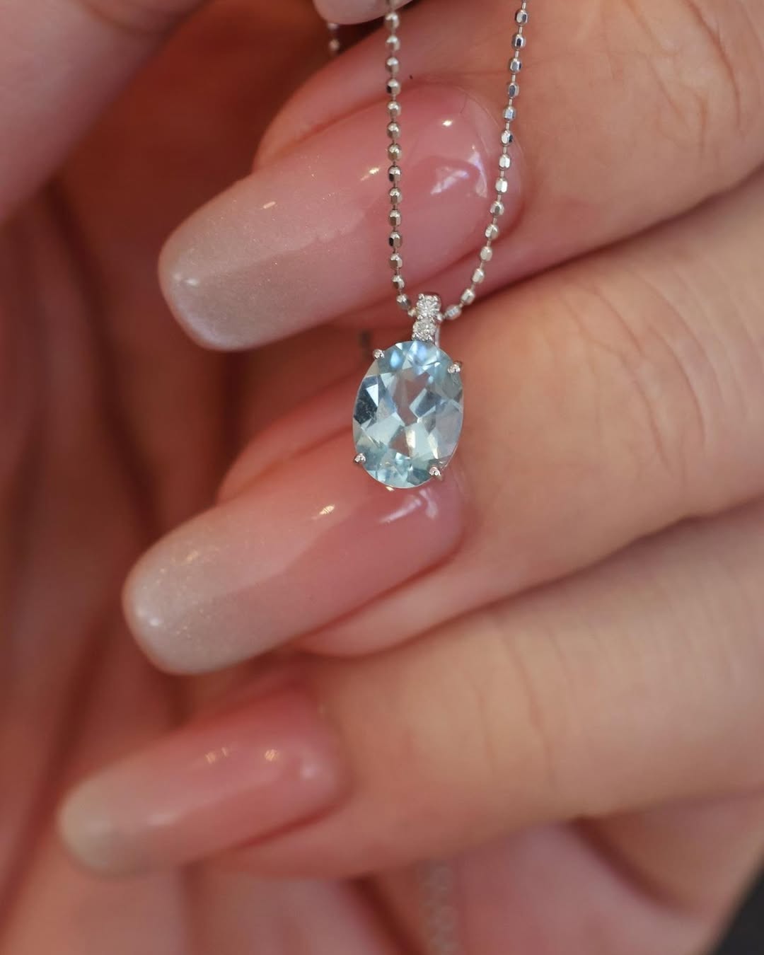 The elegant oval cut enhances the depth and softness of the aquamarine, giving a gentle yet refined look.