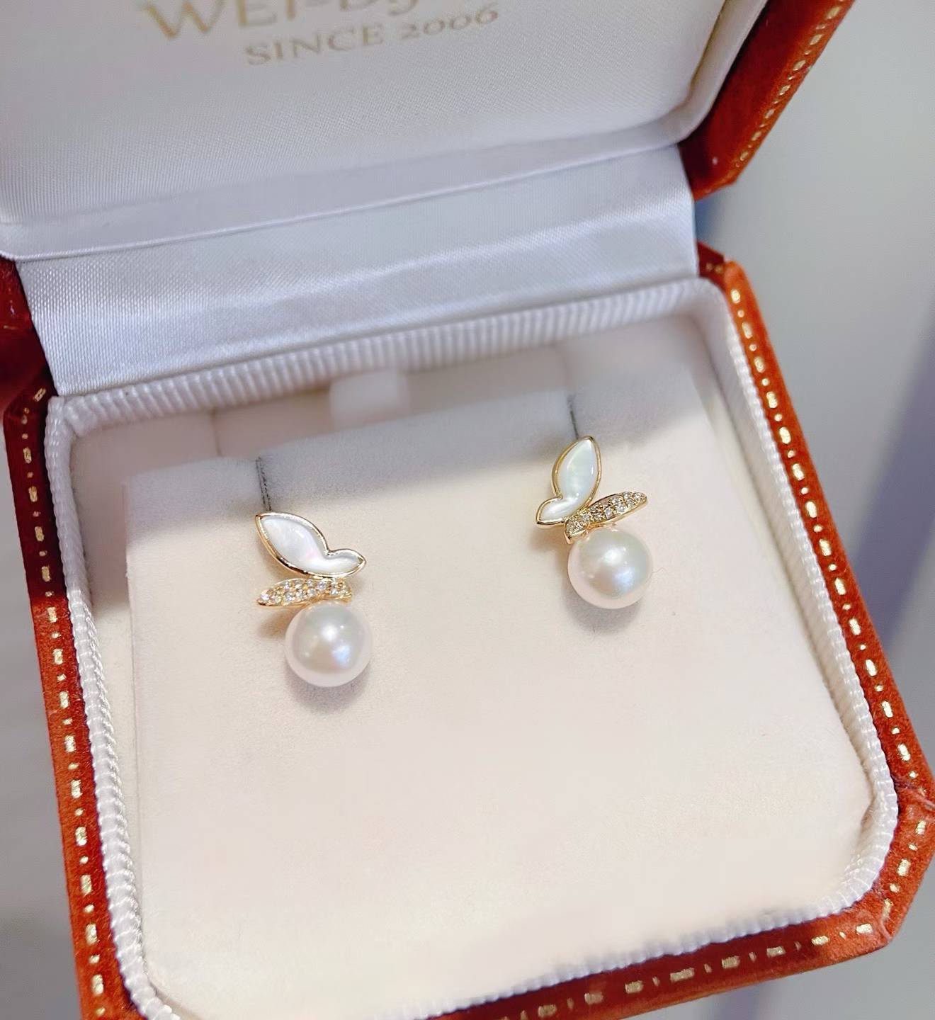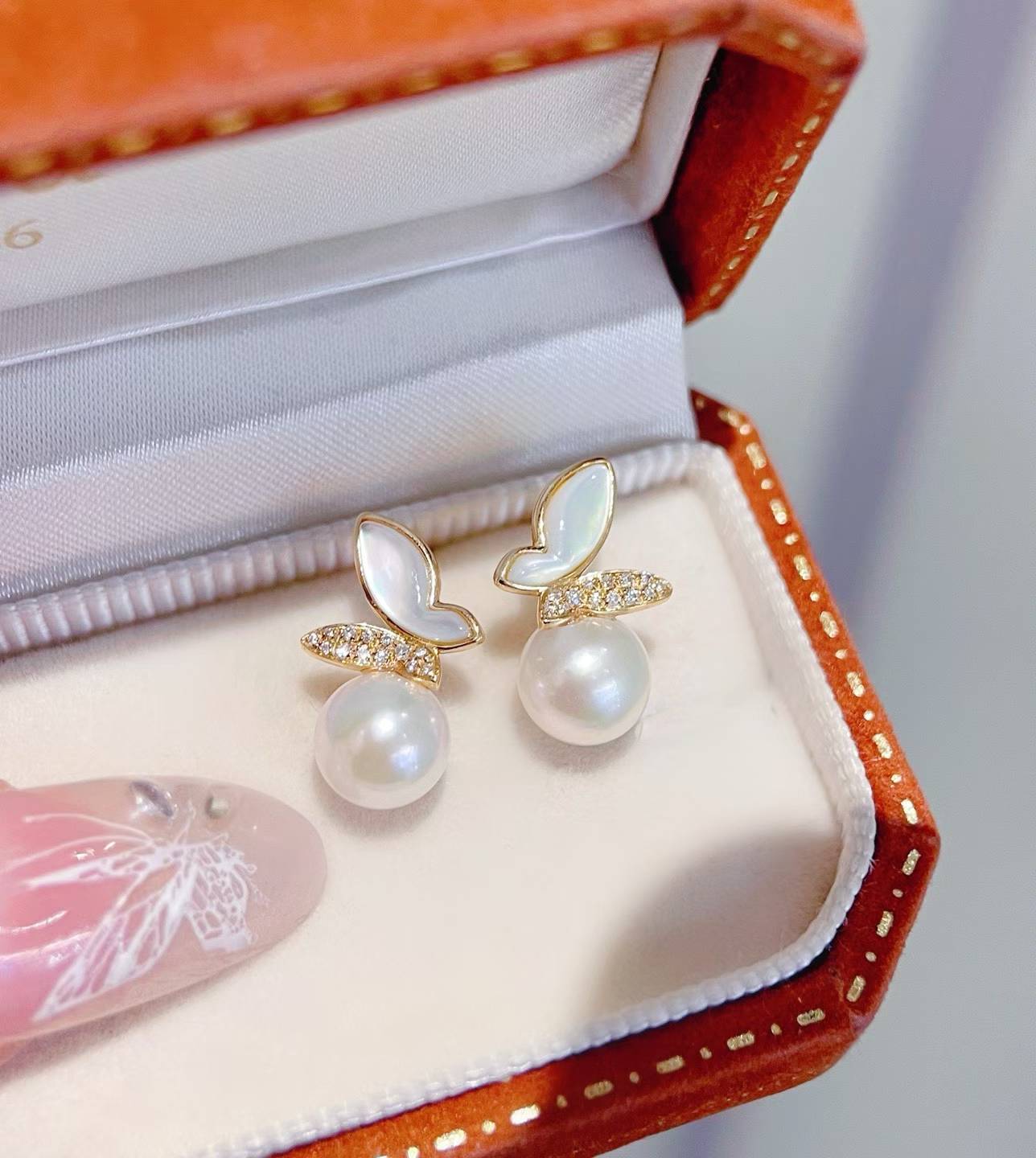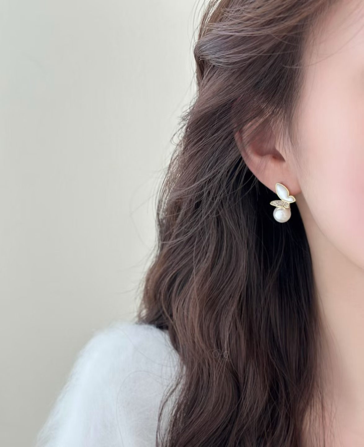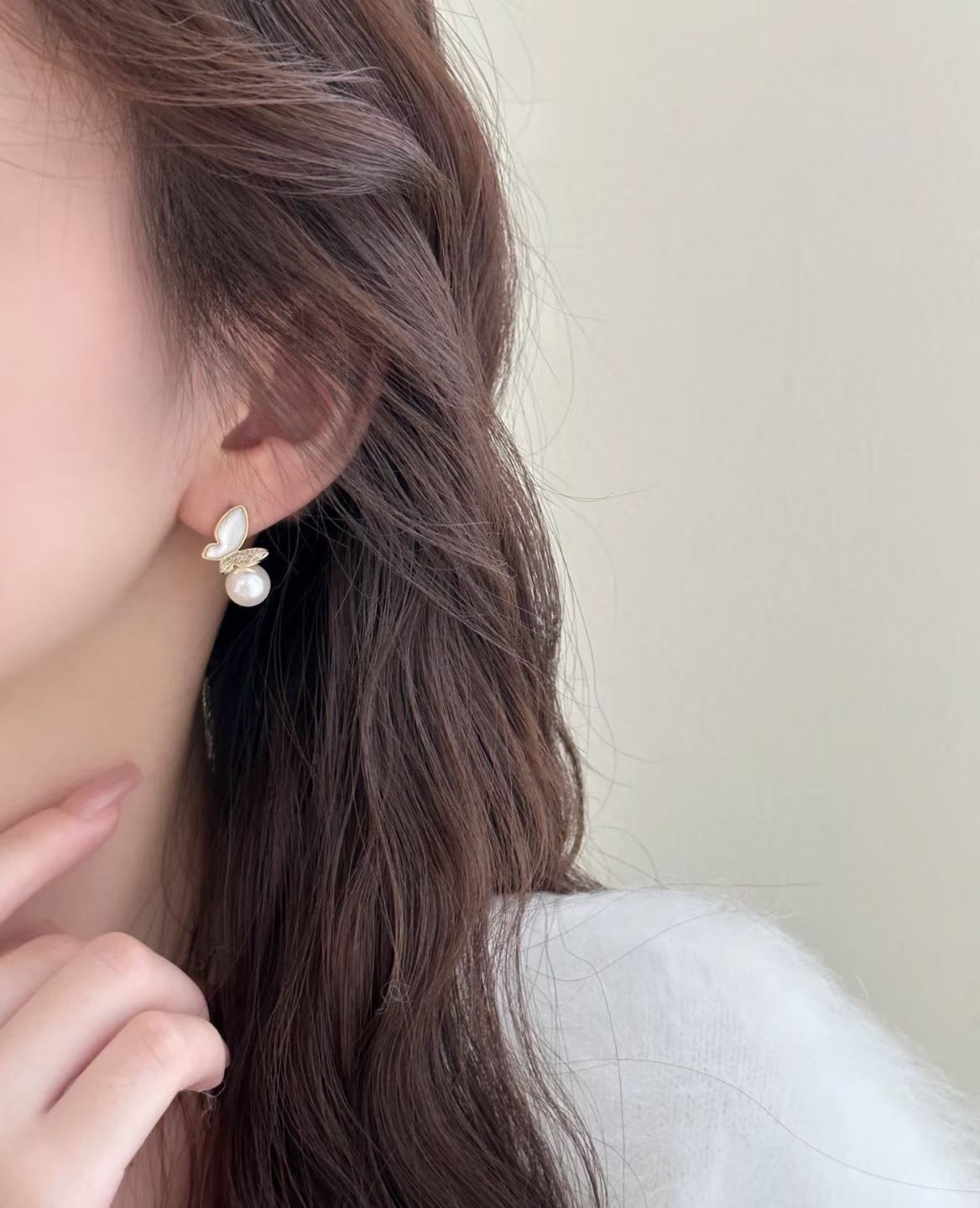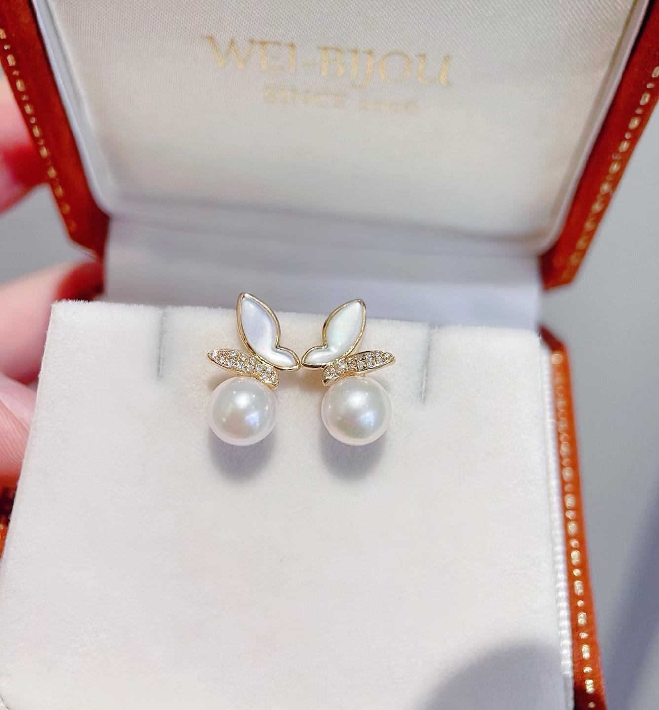 A delicate butterfly form paired with luminous Akoya pearls, creating a light, graceful presence on the ear. Refined, elegant, and effortlessly timeless.