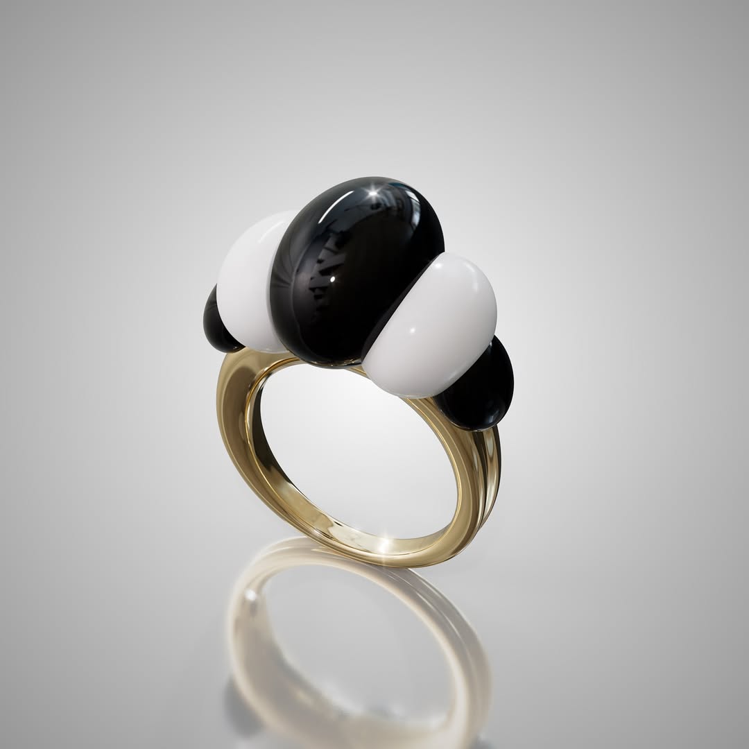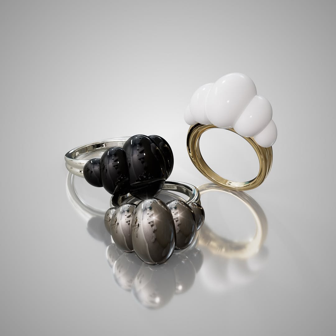 The Croissant Ring is a bold and sculptural statement piece that blends luxury with playful elegance. The smooth curvature of each element mimics the layered folds of a croissant’s golden crust.